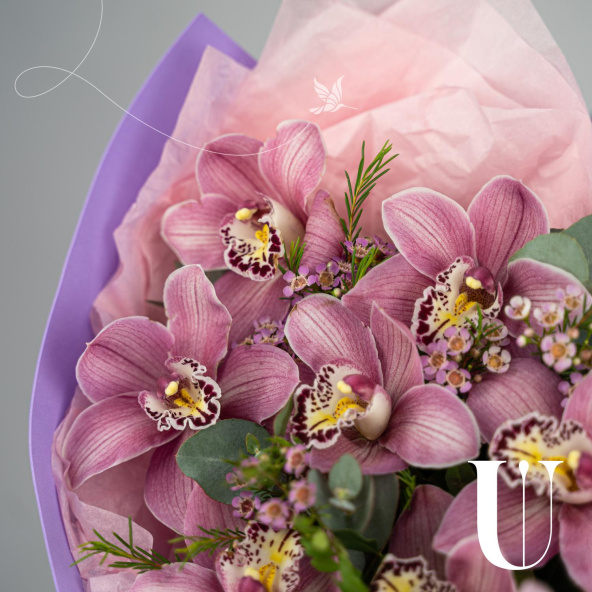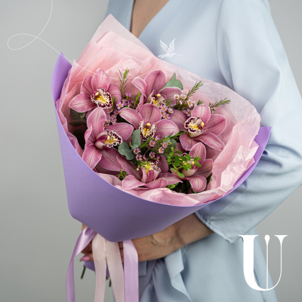 Букет из роз Пинк Охара и малиновых роз в дизайнерской упаковке