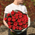 Букет из 15 пионовидных роз сорта Вайт Охара в упаковке