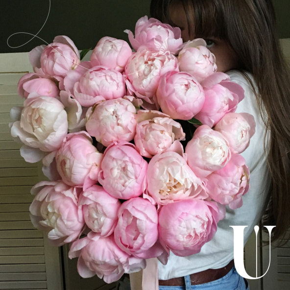 Роскошная охапка пионов, 25 штук, высота пионов 60 сантиметров
