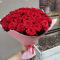 Монобукет из розовых кустовых пионовидных роз в дизайнерской упаковке