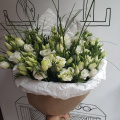 Монобукет из белых ирисов и ромашки в стильной упаковке