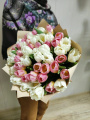 Монобукет из розовых кустовых пионовидных роз в дизайнерской упаковке