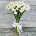 Монобукет из 7 розовых диантусов и эвкалипта в упаковке