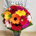 Монобукет из розовых кустовых пионовидных роз в дизайнерской упаковке