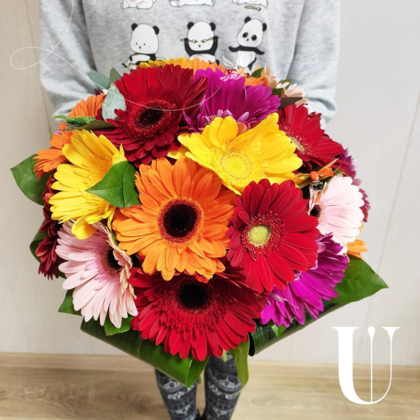 Монобукет из роз Готча и роз Пинк Мондиаль в дизайнерской упаковке