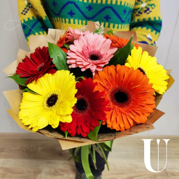 Монобукет из 7 роз сорта Капучино и эвкалипта в дизайнерской упаковке