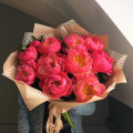 Монобукет из 15 розовых пионовидных роз в дизайнерской упаковке