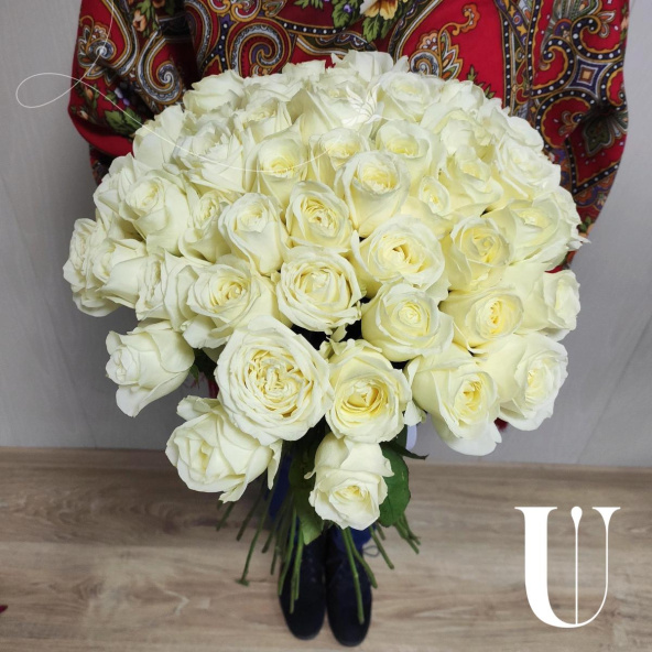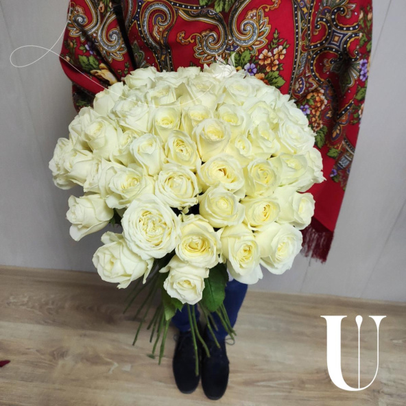 Роза белая Аваланш 60 см. Россия - 51 шт