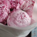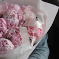 Нежный розовый букет из 15 пионов в лаконичной упаковке.