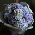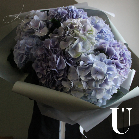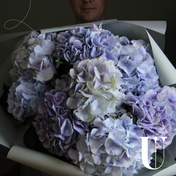 Роскошный букет из акварельных голубых гортензий, 9 штук в лаконичной упаковке