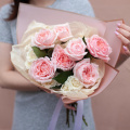 Букет из 7 пионовидных кустовых роз сорта Сильва Пинк