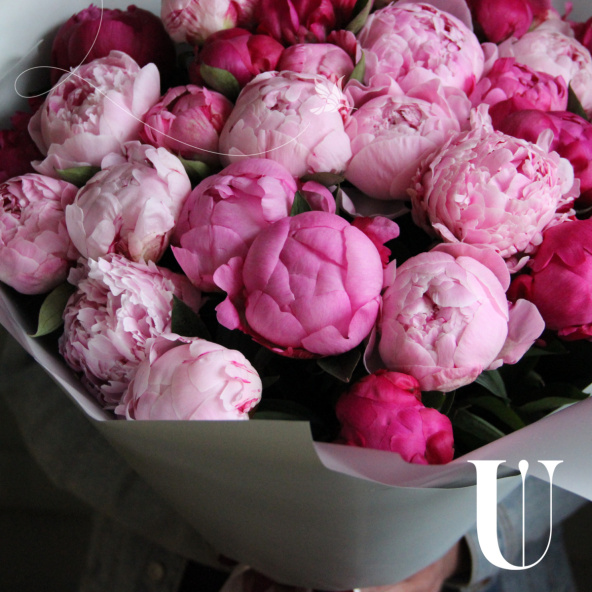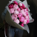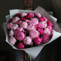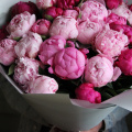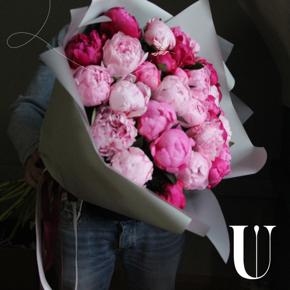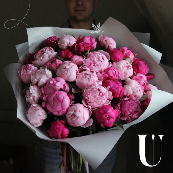 Охапка розовых пионов, 35 штук в лаконичной упаковке