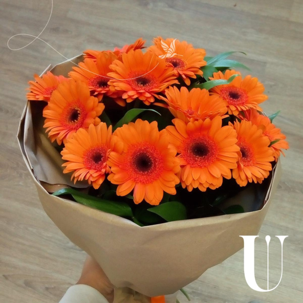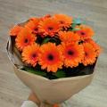 Упаковка для букета: крафт-бумага, гербера 9 шт., салал 5 шт.