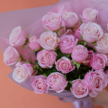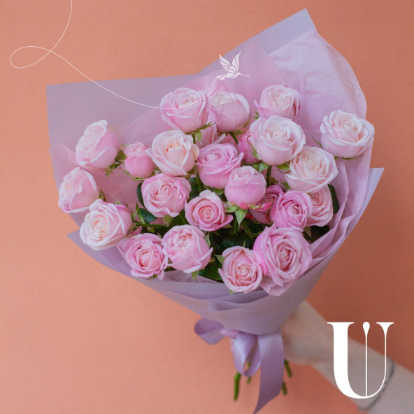 Монобукет из 7 роз сорта Пинк Флойд с атласной лентой