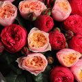 Букет из клубничных и персиковых пионовидных роз