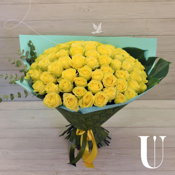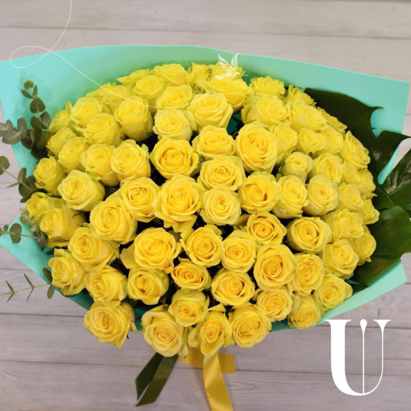 Монобукет из 35 роз сорта Ред Наоми в дизайнерской упаковке