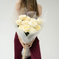 Монобукет из 11 пионовидных роз Кахала в упаковке