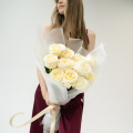 Монобукет из 7 кустовых роз Крем брюле в упаковке