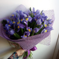 Монобукет из пионовидных роз Кахала и лимониума в нежной упаковке