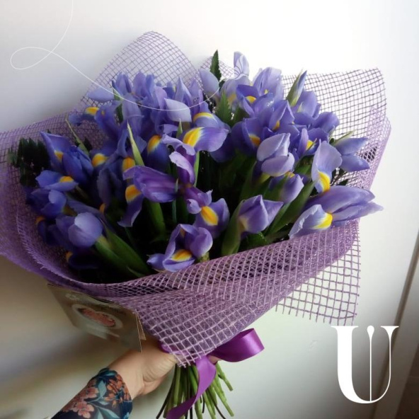 Монобукет из 7 роз сорта Кантри Блюз в дизайнерской упаковке
