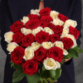 Букет из роз Ред Наоми и Эксплорер в матовой пленке