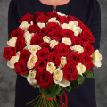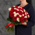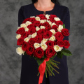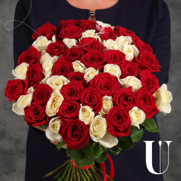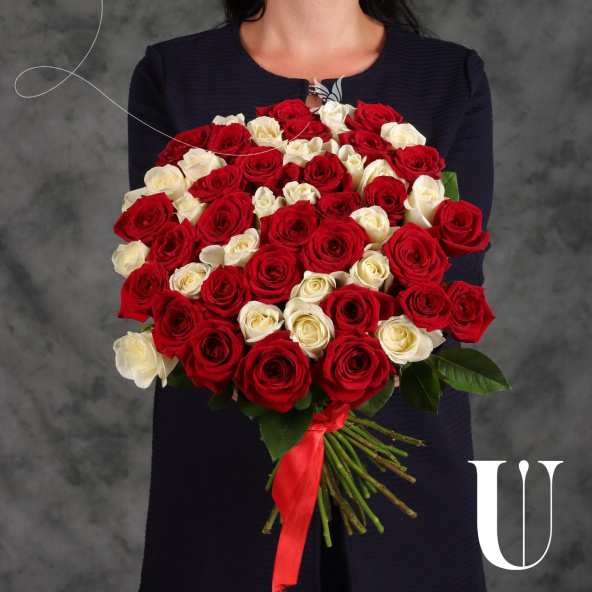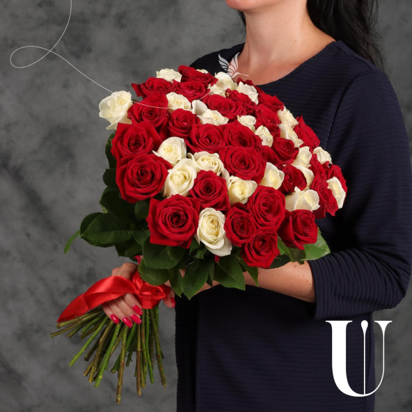 Стильный монобукет из 25 белых роз сорта Мондиаль