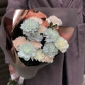 Монобукет из 9 диантусов Мун Аква и эвкалипта в упаковке