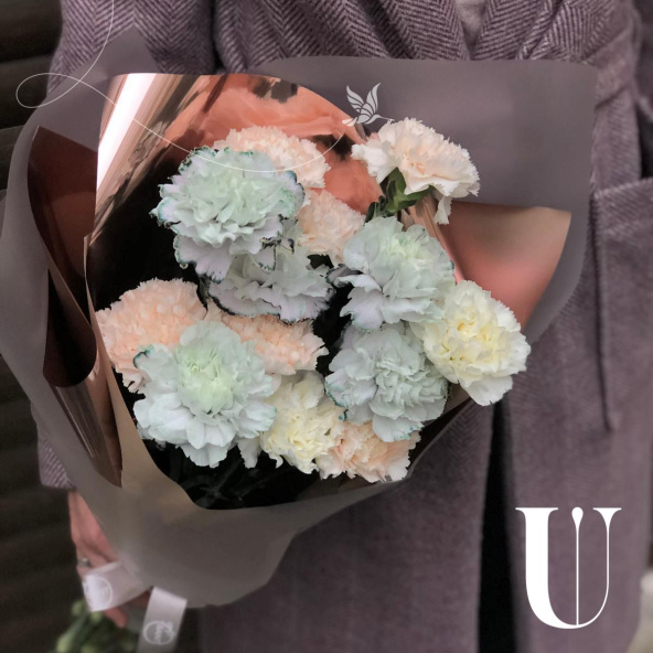 Моно букет из гвоздик - 13 штук, упаковка - корейская пленка.