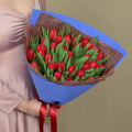 Монобукет из 13 красных роз Эксплорер в дизайнерской упаковке