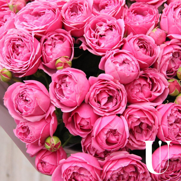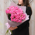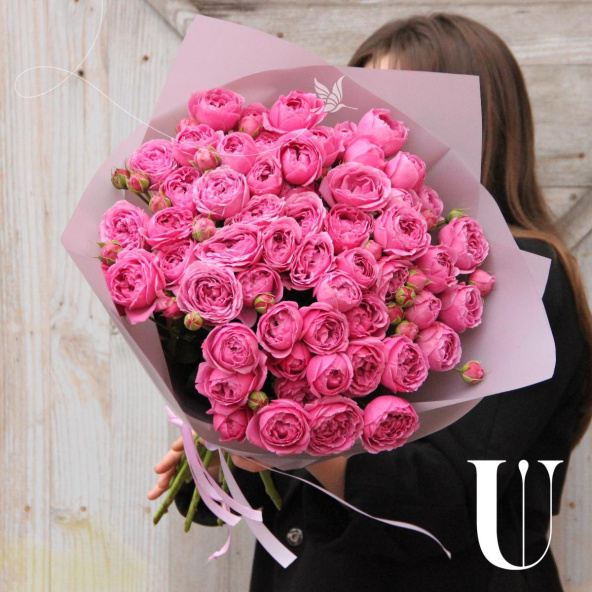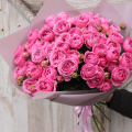 Букет из 15 веточек кустовых пионовидных роз, в лаконичной упаковке.