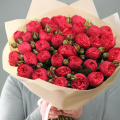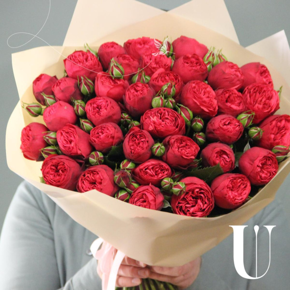 Моно букет из 35 пионовидных роз сорта red piano