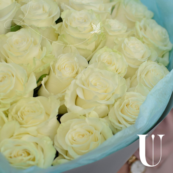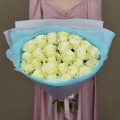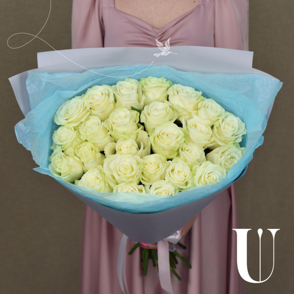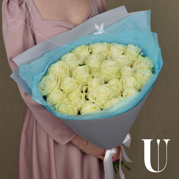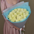 Монобукет из 25 роз сорта Плаяй Бланка в упаковке