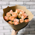 Букет из 15 персиковых роз в крафтовой упаковке