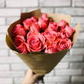 Монобукет из кустовых хризантем сорта Балтика в упаковке