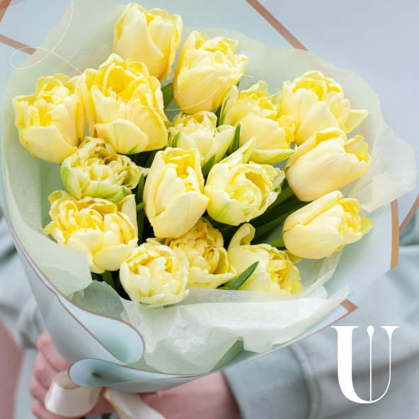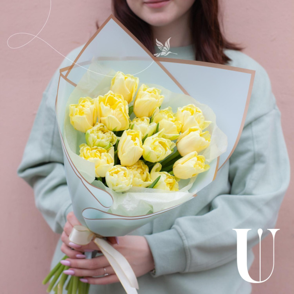 Монобукет из 13 пионовидных тюльпанов в упаковке