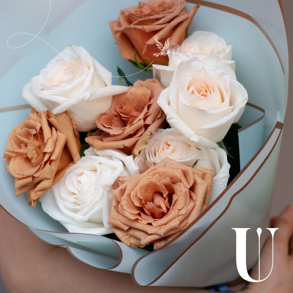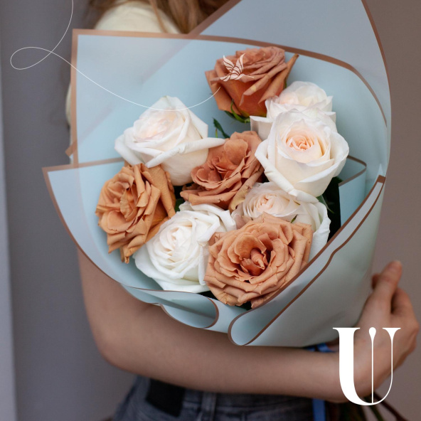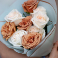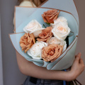 Нежная композиция из пионовидных роз в дизайнерской упаковке