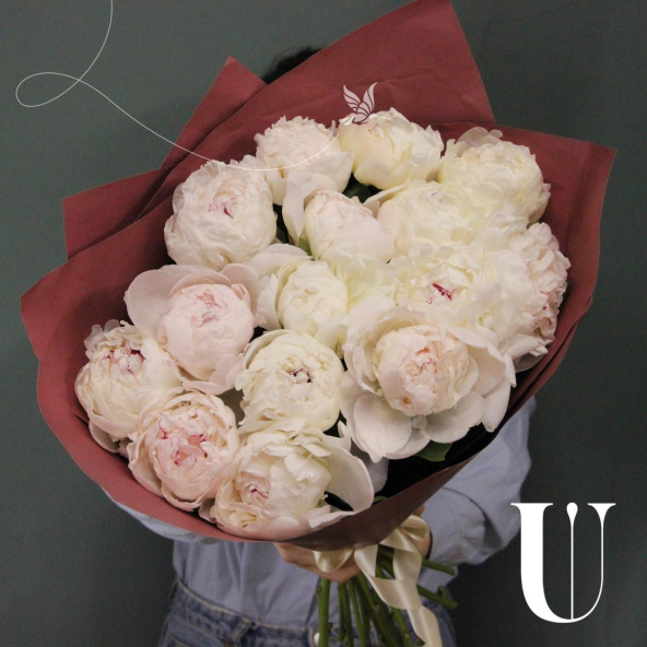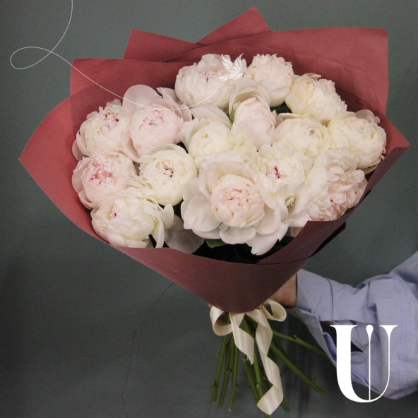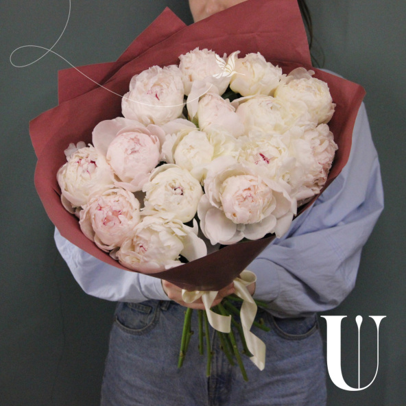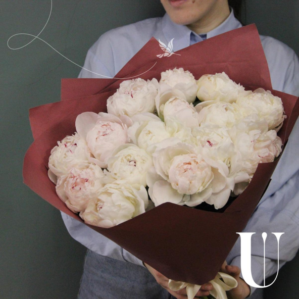 Восхитительный моно букет из 17 пионов. Стильное цветочное решение для любого случая.