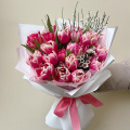 Монобукет из 11 пионовидных роз Кахала в упаковке