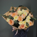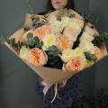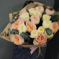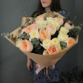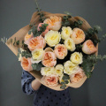 - Восхитительный букет из 21 пионовидной розы с веточками ароматного эвкалипта