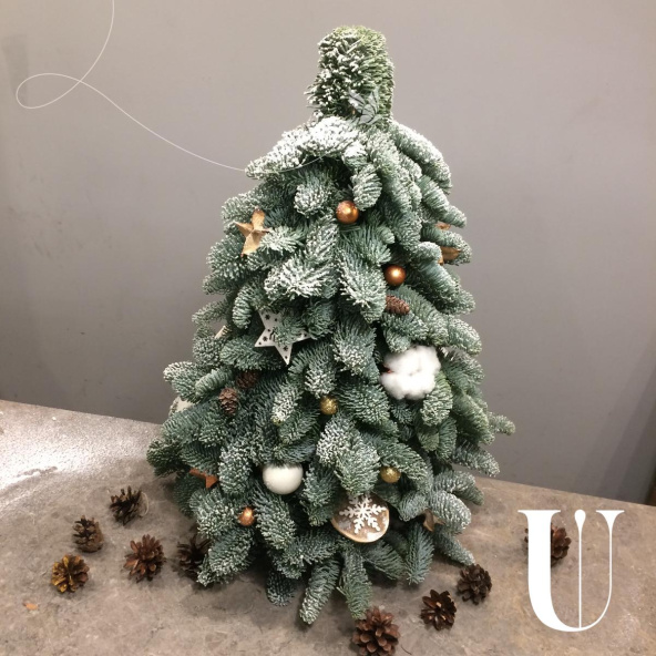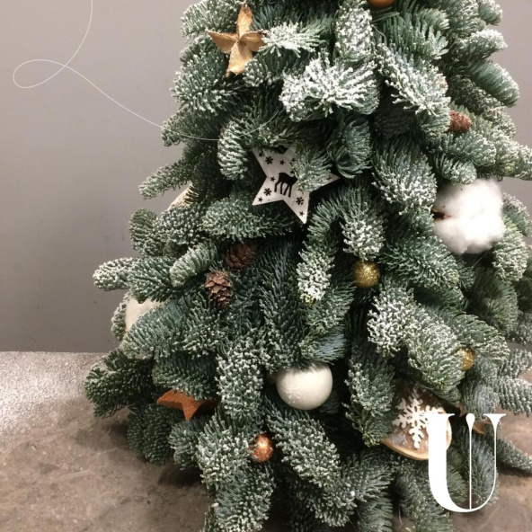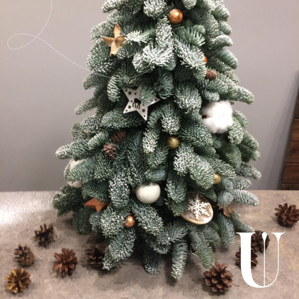 Сборная елочка из датской пихты, в оформлении - хлопок, шишки, украшения из дерева и стёкла. Отличный подарок и декор для вашего дома