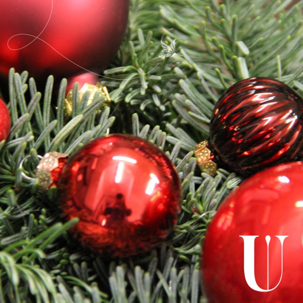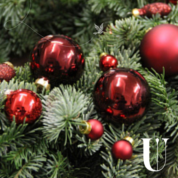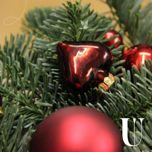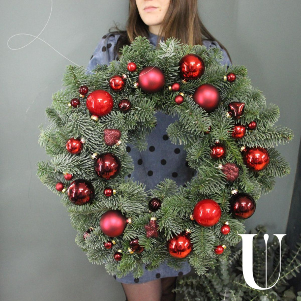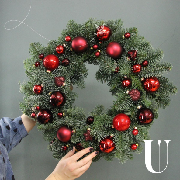 Рождественский венок из натуральной датской пихты и стеклянных елочных игрушек