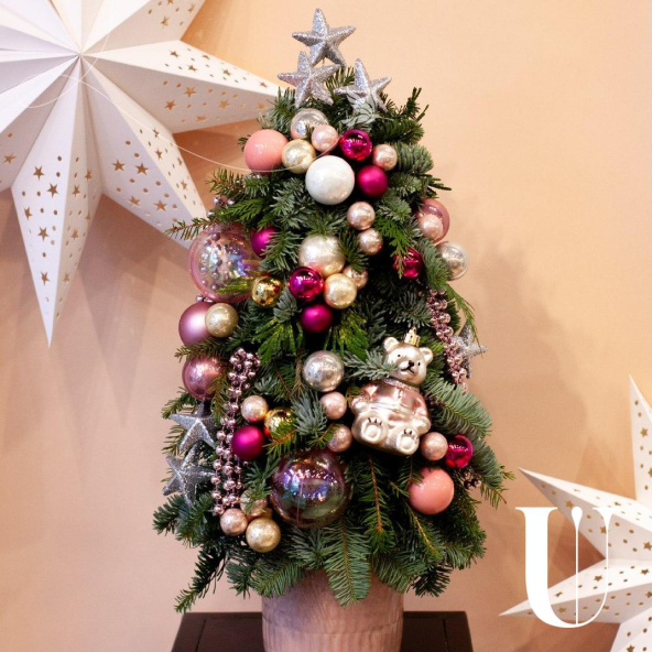 Новогодняя елочка из нобилиса, красных шаров и лент