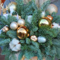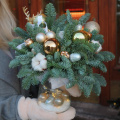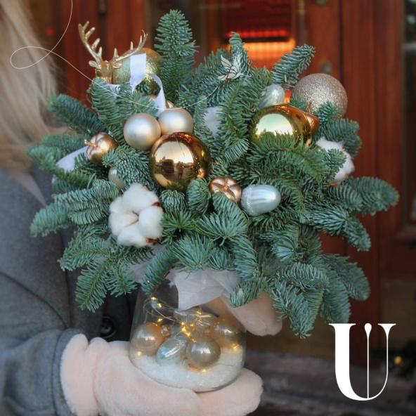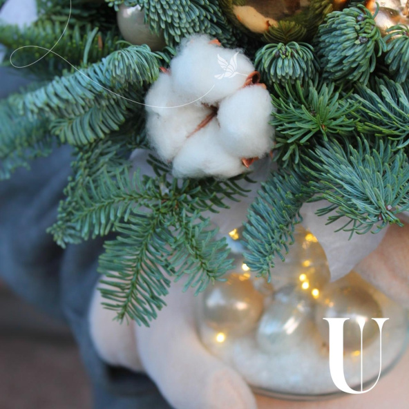 Новогодняя композиция - волшебный зимний подарок ,наполненный атмосферой уюта и тепла. Композиция из свежих хвойных веток нобилиса и новогоднего декора ,ярких красных ягод и игрушек, создают идеальный баланс между природной красотой и праздничной атмосферой.