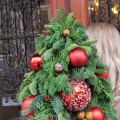 Декор в классических красных тонах, шишки и натуральные элементы - придаёт ёлочке праздничный и нарядный вид, создавая атмосферу уюта и волшебства.