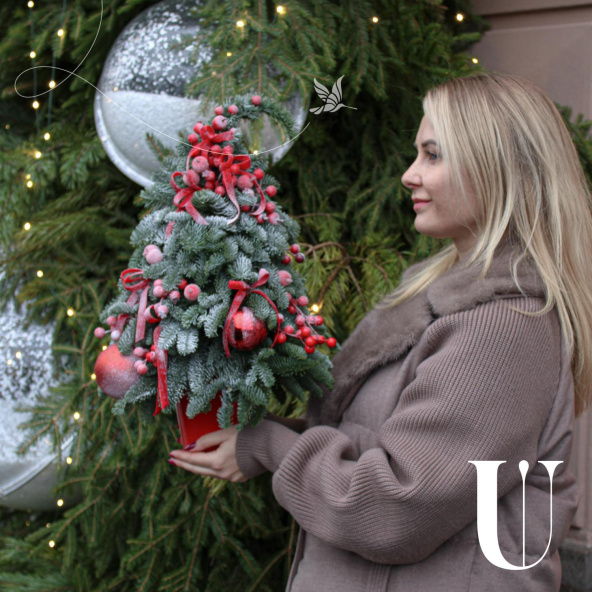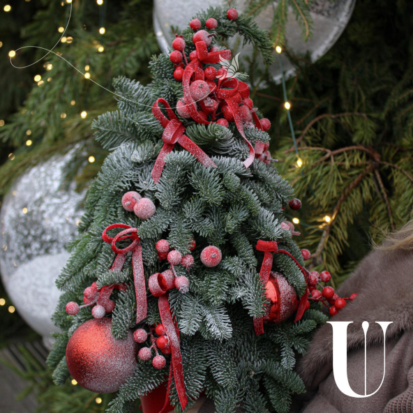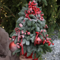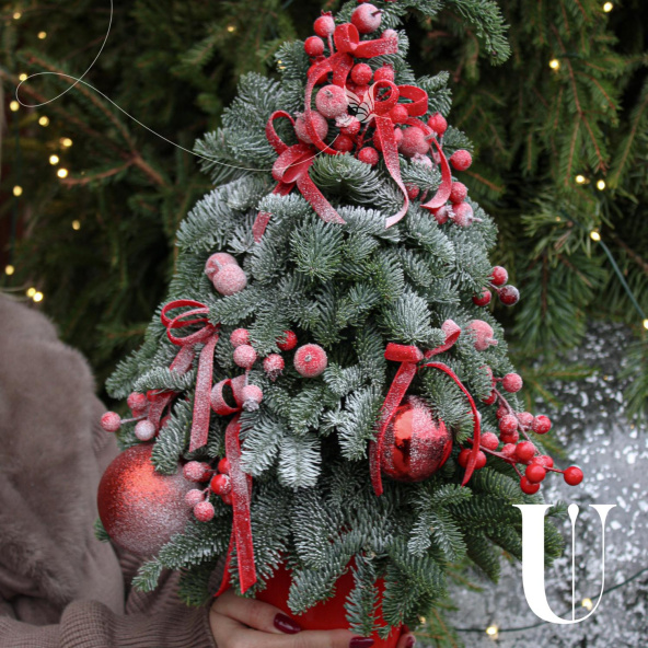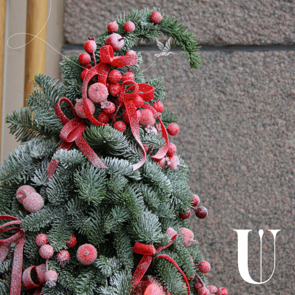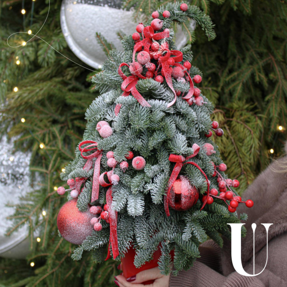 Эффектная новогодняя композиция из Датской хвои (нобилиса), новогодних шаров, красных ягод и лент, станет идеальным украшением вашего дома или офиса, а также отличным подарком для Мамы, Сестры, Коллеги, Любимой девушки или близкого человека на Новый год, Рождество, День Рождения, Юбилей или просто для создания праздничного настроения