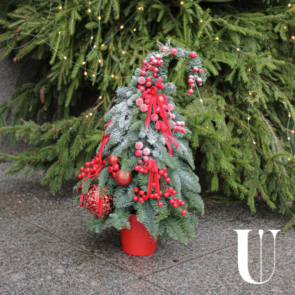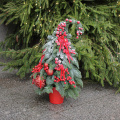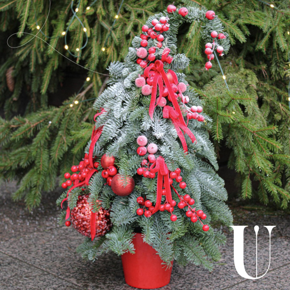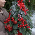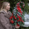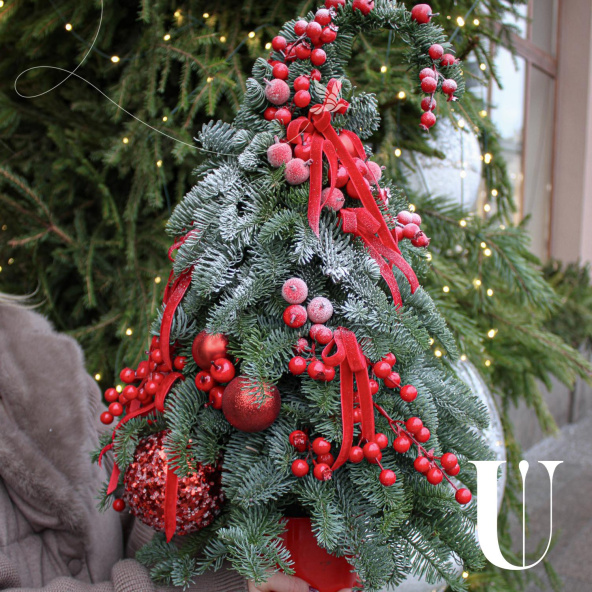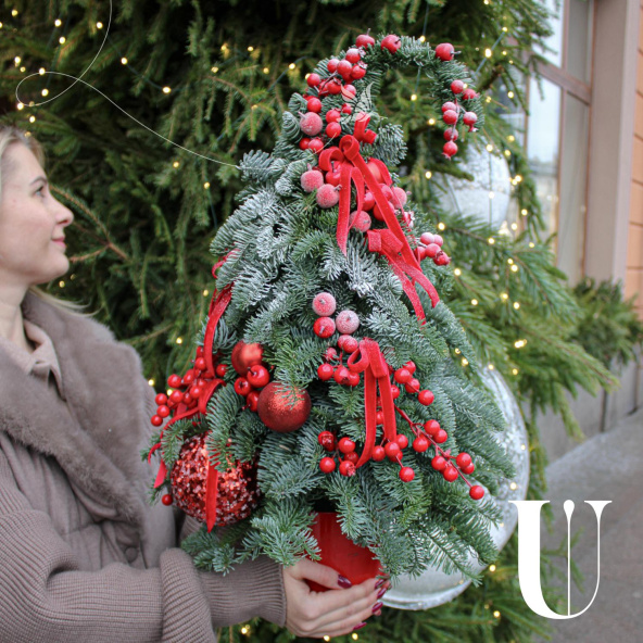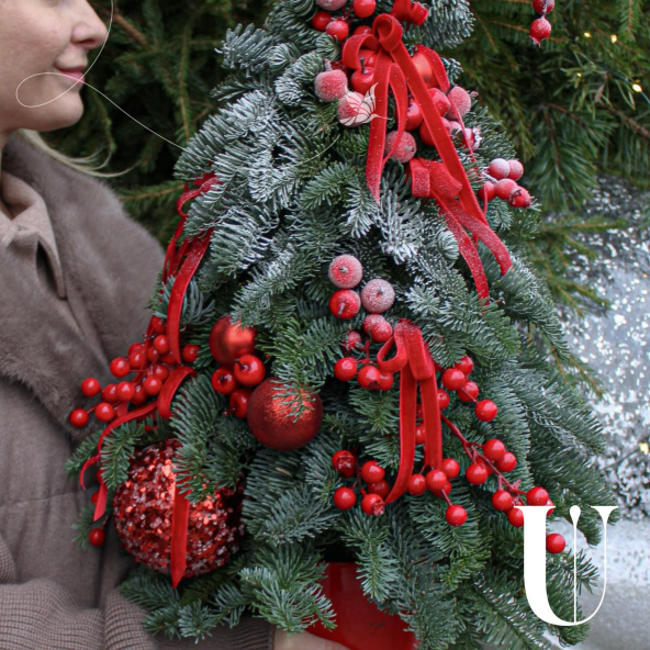 Эффектная новогодняя композиция из Датской пихты (нобилиса),новогодних шаров, красных ягод и лент, станет идеальным украшением вашего дома или офиса, а также отличным подарком для Мамы, Сестры, Коллеги, Любимой девушки или близкого человека на Новый год, Рождество, День Рождения, Юбилей или просто для создания праздничного настроения