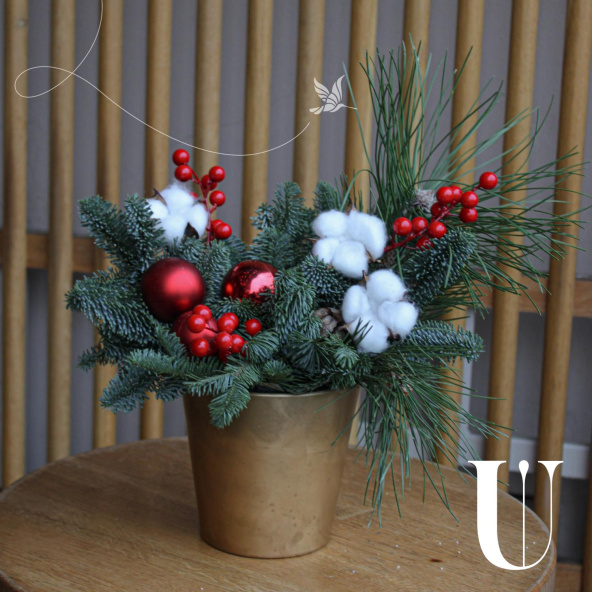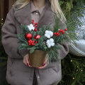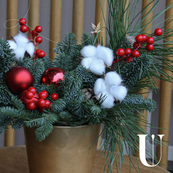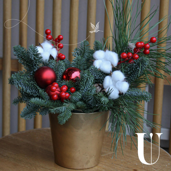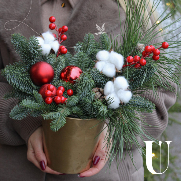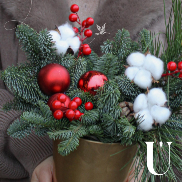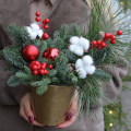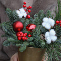 Эффектная новогодняя композиция из Датской хвои (нобилиса), новогодних шаров, хлопка и красных ягод, станет идеальным украшением вашего дома или офиса, а также отличным подарком для Мамы, Сестры, Коллеги, Любимой девушки или близкого человека на Новый год, Рождество, День Рождения, Юбилей или просто для создания праздничного настроения