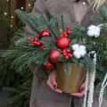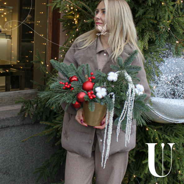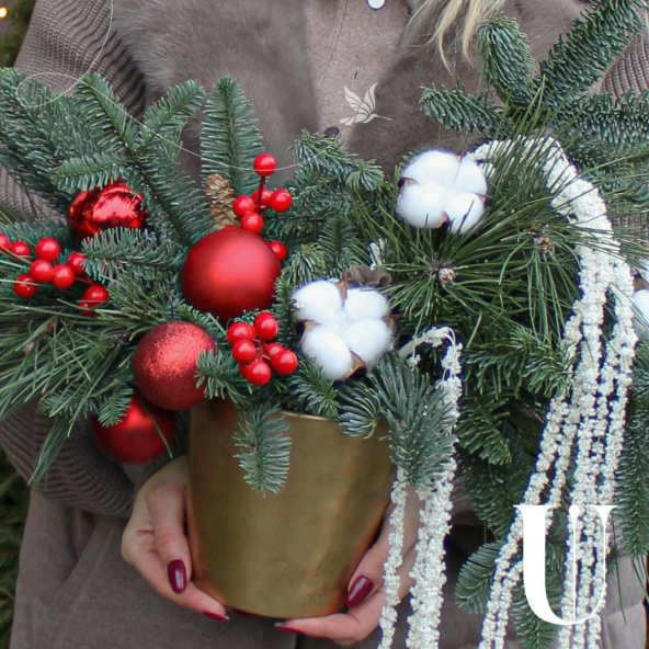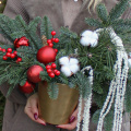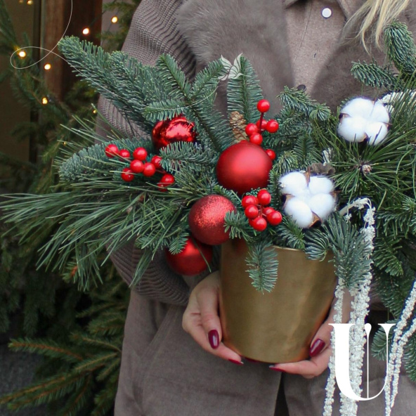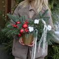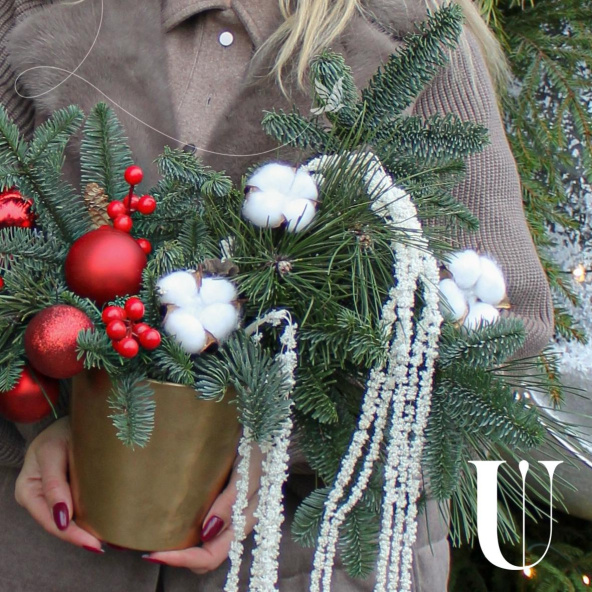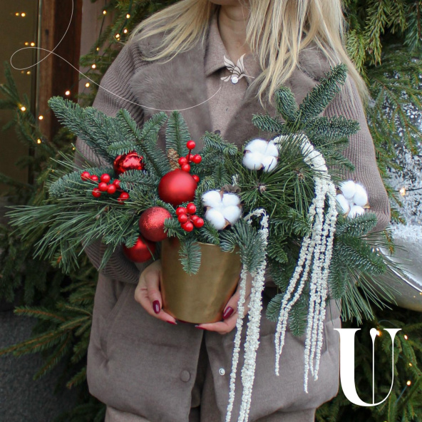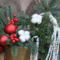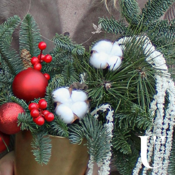 Эффектная новогодняя композиция из ароматной Датской хвои (нобилиса), новогодних шаров, ягод, хлопка и амаранта, станет идеальным украшением вашего дома или офиса, а также отличным подарком для Мамы, Сестры, Коллеги, Любимой девушки или близкого человека на Новый год, Рождество, День Рождения, Юбилей или просто для создания праздничного настроения