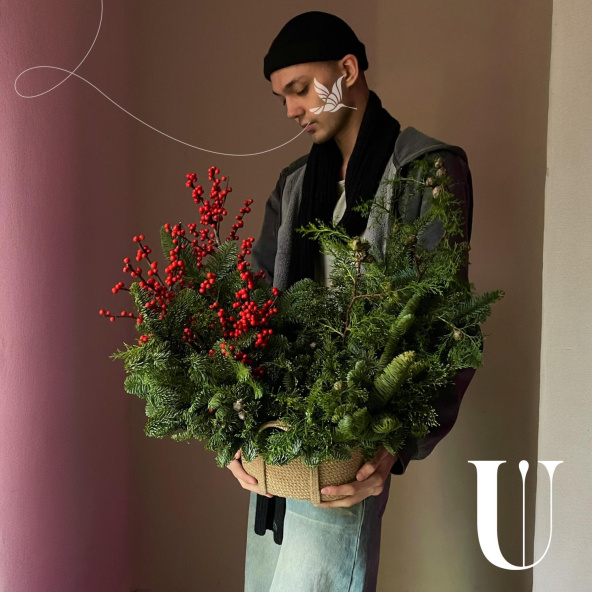 Композиця в корзине, которая создаёт ощущение заботы и уюта — как мягкий шарф и чашка чая в холодный день. Очень душевный подарок!