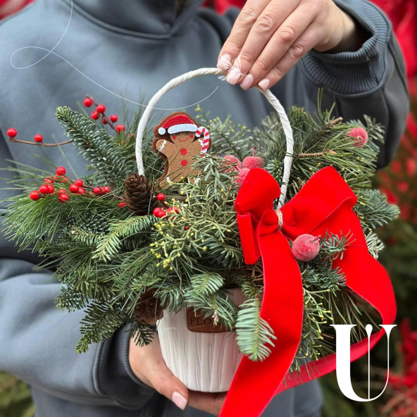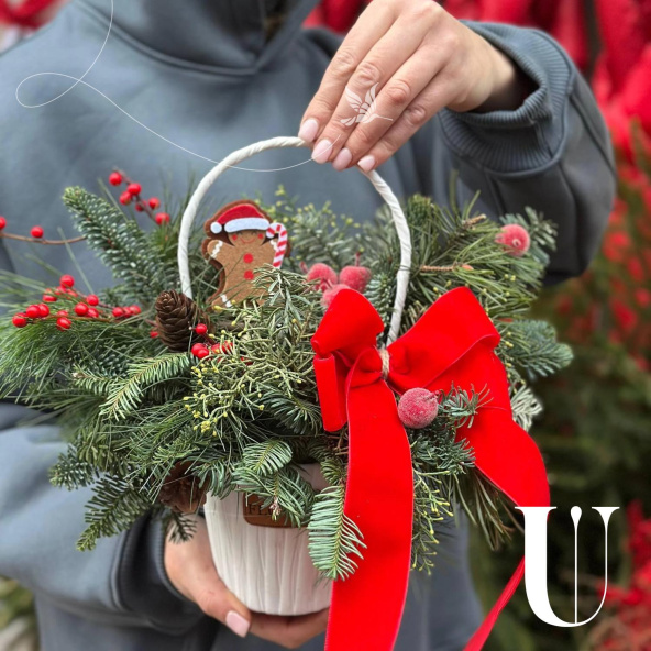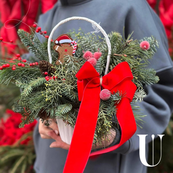 Новогодняя композиция "Хвойная корзинка с Пряней"